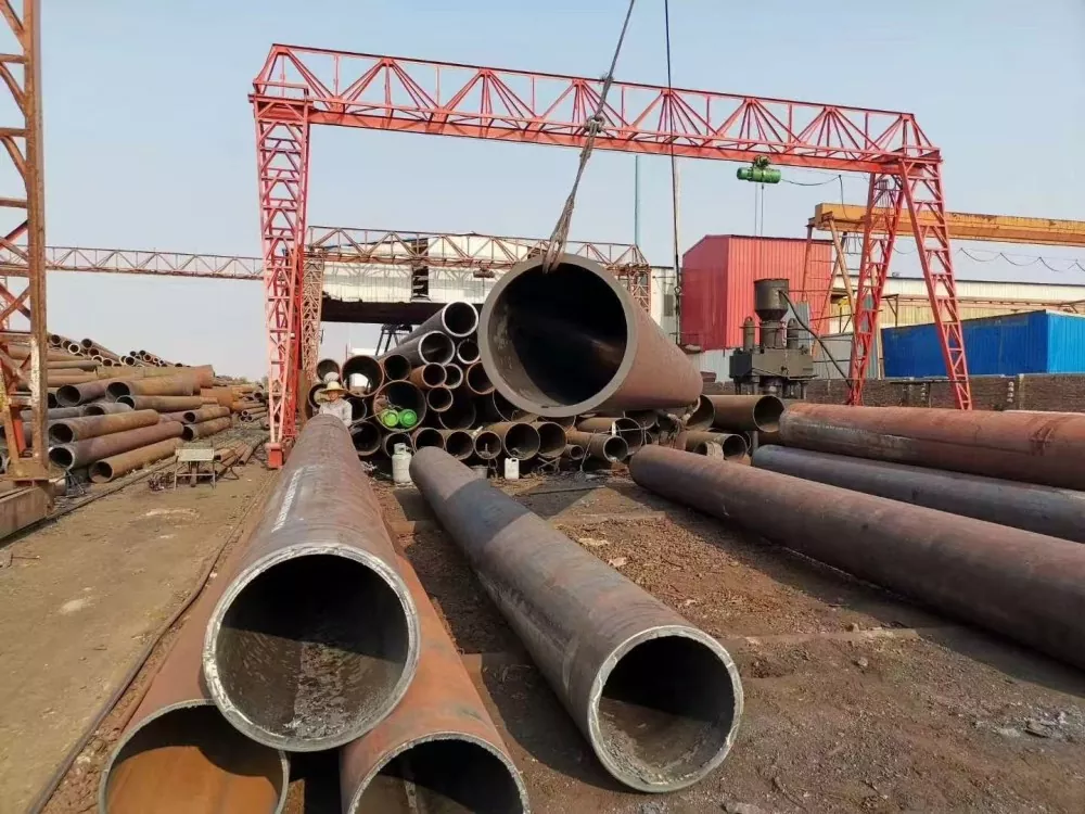 အနက်ရောင် ချောမွေ့မှုမရှိသော သံမဏိပိုက်များ ထုတ်လုပ်ရန်အတွက်၊ သံမဏိပြားကို ပထမဦးစွာ 1200-1300 ℃ မှ အပူပေးပြီး အပေါက်ဖောက်စက်ဖြင့် ဖွဲ့စည်းသည်။ ထို့နောက် ၎င်းကို ပိုက်လှိမ့်စက်ဖြင့် လှိမ့်ကာ အရွယ်အစားစက်ဖြင့် လှိမ့်သည်။ နောက်ဆုံးတွင်၊ ၎င်းသည် အအေးခံခြင်း၊ ဖြောင့်ခြင်း၊ ဖြတ်တောက်ခြင်း နှင့် အခြားကုန်ချောများကို ဖွဲ့စည်းရန် လုပ်ငန်းစဉ်များကို ဆောင်ရွက်သည်။ ထုတ်ကုန်သတ်မှတ်ချက်များတွင်၊ အပြင်ဘက်အချင်းသည် အများအားဖြင့် 6 နှင့် 610 မီလီမီတာကြားရှိပြီး φ10 မှ φ219 မီလီမီတာတို့တွင် အများအားဖြင့်အသုံးပြုသည့်အရွယ်အစားများဖြစ်သည်။ နံရံအထူအကွာအဝေးသည် 1 မှ 25 မီလီမီတာဖြစ်သည်။ အရှည်သည် ယေဘူယျအားဖြင့် ၄ မှ ၁၂ မီတာအထိရှိသည်။ တစ်ချိန်တည်းမှာပင်၊ သုံးစွဲသူများ၏ သီးသန့်လိုအပ်ချက်များအပေါ် အခြေခံ၍ စိတ်ကြိုက်ထုတ်လုပ်မှုကိုလည်း ပံ့ပိုးပေးပါသည်။